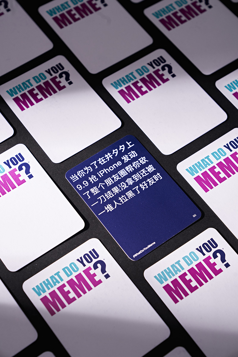 After conducting this research and development work, Creative Labs executed a series of test panels with focus group audiences, to optimize the caption and meme cards, completing and delivering the first official Chinese version of What Do You Meme to consumers across the country.