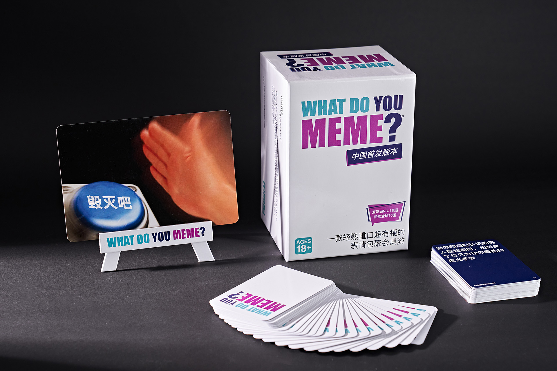 What Do You Meme is a fun and viral adult board game distributed in over 60 countries and several languages. The game concept is to match funny captions cards with trendy memes and create social interactions, laughing around the possible matches.