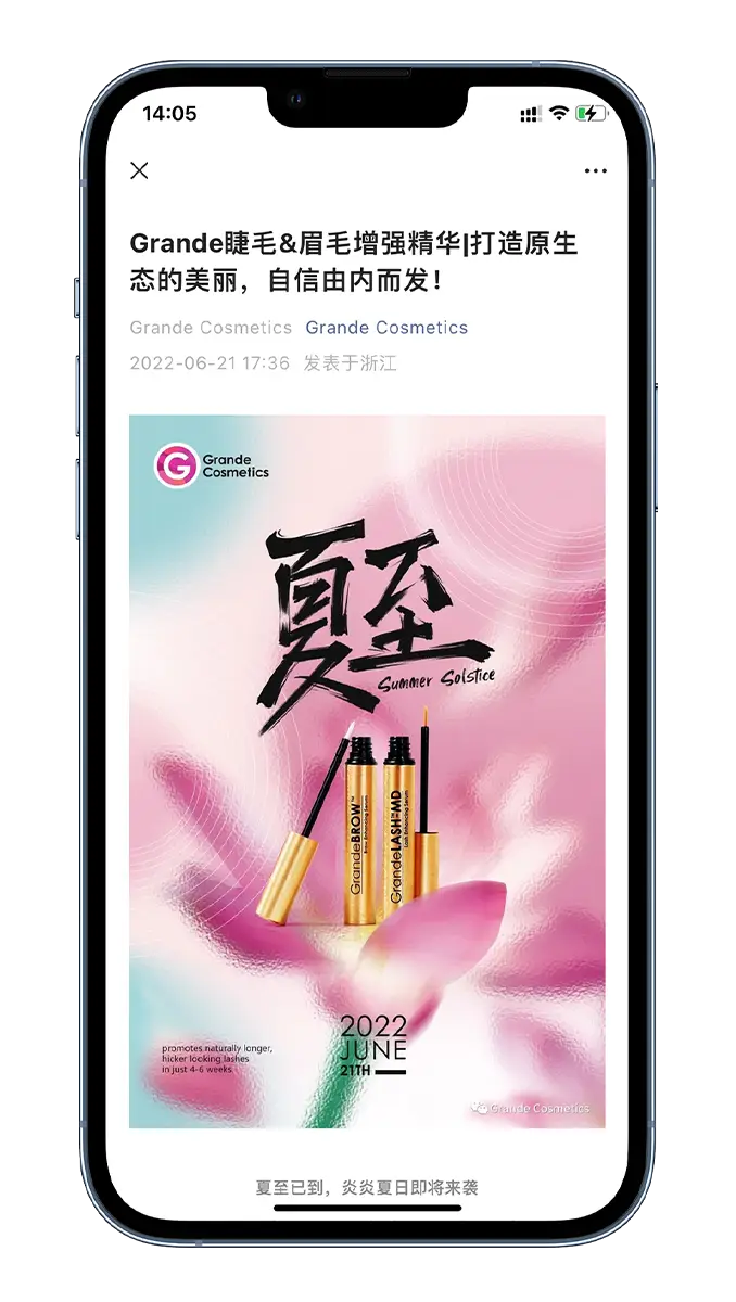 Grande Cosmetics is a beauty brand that has designed and developed world leading eyelashes and eyebrow serums that “help you to have longer, more luscious looking lashes”. As beauty trends are rapidly evolving in China and becoming more aligned with global standards, they have recognized the unique opportunity to market their premium products to Chinese consumers looking for safe, high-quality beauty products.