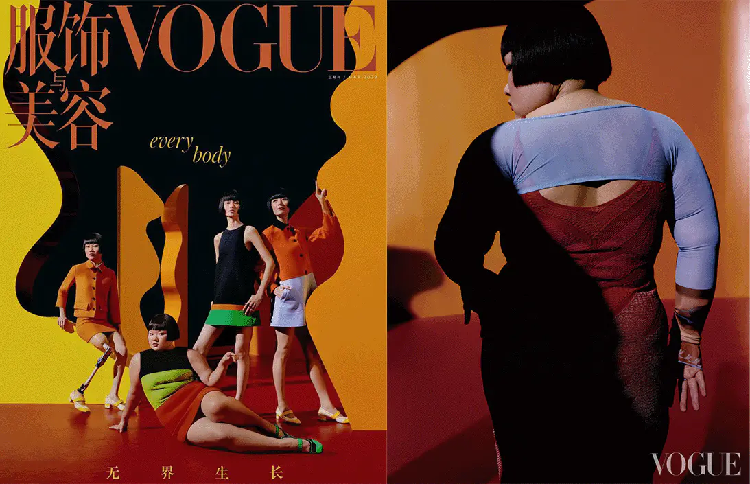 While body positivity remains an uphill battle in China, there is an increased acceptance of various body types. Some Chinese brands have started to incorporate more realistic features in their virtual models, such as imperfect skin and wider hips. Plus-size models like Ruoxin Xu are starting to grace magazine covers like Vogue China and various advertisement campaigns.