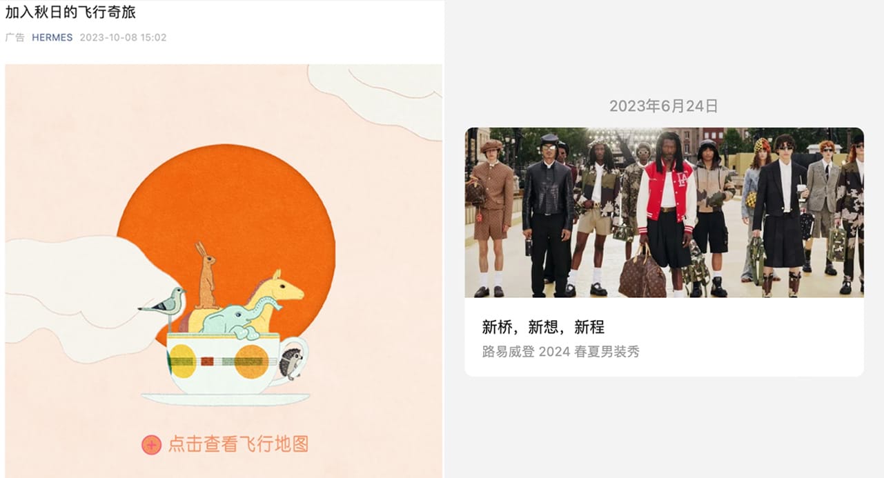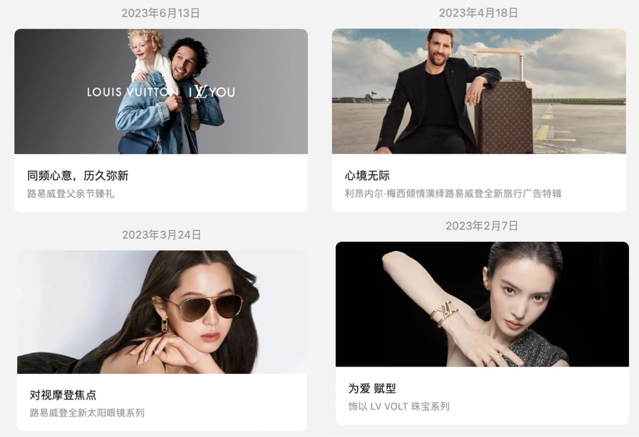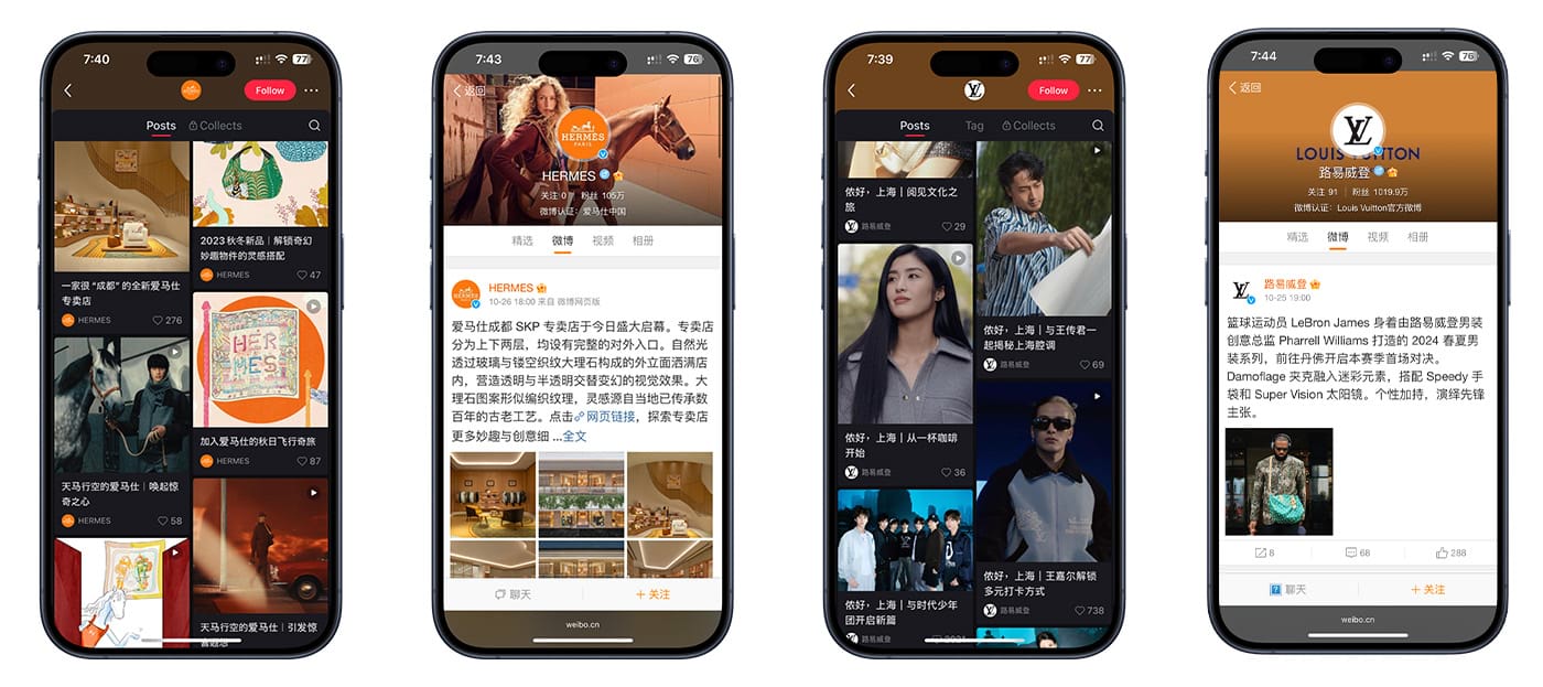 The following examples from Hermes and LV social media channels in China help to present this contrast and support the use of more intimate and personal brand images connected to unique brand values that create real differentiation. Top stars and leading influencers work with numerous luxury brands and often become overexposed.
